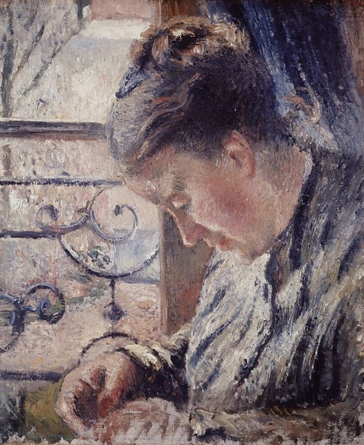 Mme Pissarro sewing beside a Window, 1878