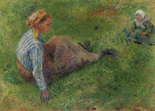 Resting, Peasant Girl Lying on the Grass, Pontoise, 1882